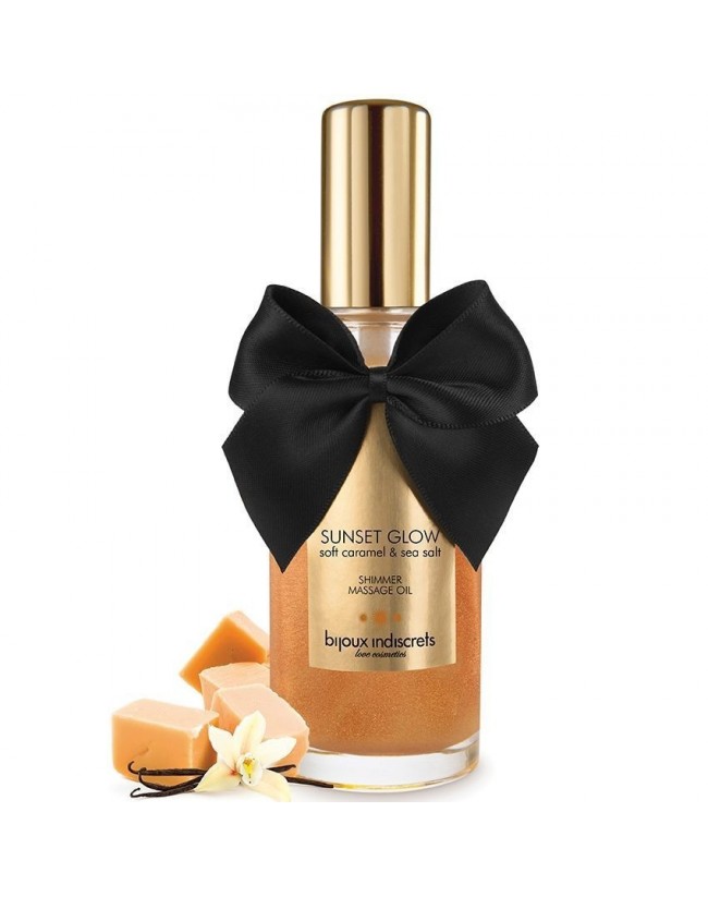 Cautiva su mirada con este aceite de masaje con partículas doradas y aroma a caramelo que emana destellos de irresistible tentación.|Contenido: Aceite de masaje con partículas brillantes y aroma a caramelo (100 ml).Consigue una piel luminosa y tentadora con un masaje sensual bañado de brillo dorado al aroma del caramelo con solo unas gotas de aceite. Comienza con movimientos circulares por todo el cuerpo y finaliza con caricias sensuales.Bijoux es simbolo de placer , erotismo y sensualidad, fabrican productos clave para el mejor climax en tus momentos intimos.La imaginación está presente en todos los aspectos de la vida, pero cobra especial relevancia en los momentos de intimidad. En Bijoux Indiscrets, sabemos lo importante que son las fantasías y el juego en las relaciones.Por eso, cada uno de nuestros productos esconde una idea, una historia y un secreto que los dota de personalidad, haciéndolos únicos.Bienvenidos al mundo secreto de Bijoux Indiscrets.|El origen del Nombre Bijoux Indiscrets!“Les Bijoux Indiscrets” es la novela erótica escrita por Denis Diderot, en el s.XVIII, en la que sus personajes viven en un mundo onírico repleto de erotismo y fantasía. A esa otra realidad, acceden gracias a un anillo mágico. Y es, precisamente, ese “anillo mágico” el que preside nuestro nombre, y esperamos nos guie, para poder conducir también a todos nuestros clientes hasta ese otro mundo lleno de placeres y sensuales aventuras.