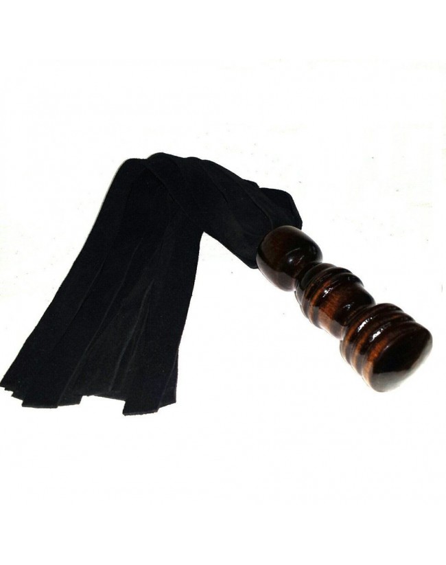Latigo en cuero, con mango de madera marrón, ideal para las partes mas pequeñas y sensibles del cuerpo.