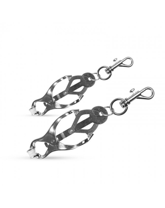 Estas pinzas metálicas para pezones de la colección EasyToys están listas para estimular tus puntos más sensibles. Las pinzas de japonesas están hechas de metal fuerte y duradero y tienen tapas de protección blandas en las puntas. Con clips en la parte inferior para que pueda fijar fácilmente las pinzas a una cuerda de bondage o cadenas.