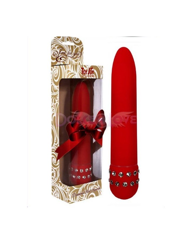 Toy Joy nos presenta un vibrador con un glamuroso diseño. Fabricado con un novedoso material plástico, cabe destacar su agradable textura. También se observan detalles de pedrería en forma de diamantes en la parte inferior, dándole un toque de distinción.