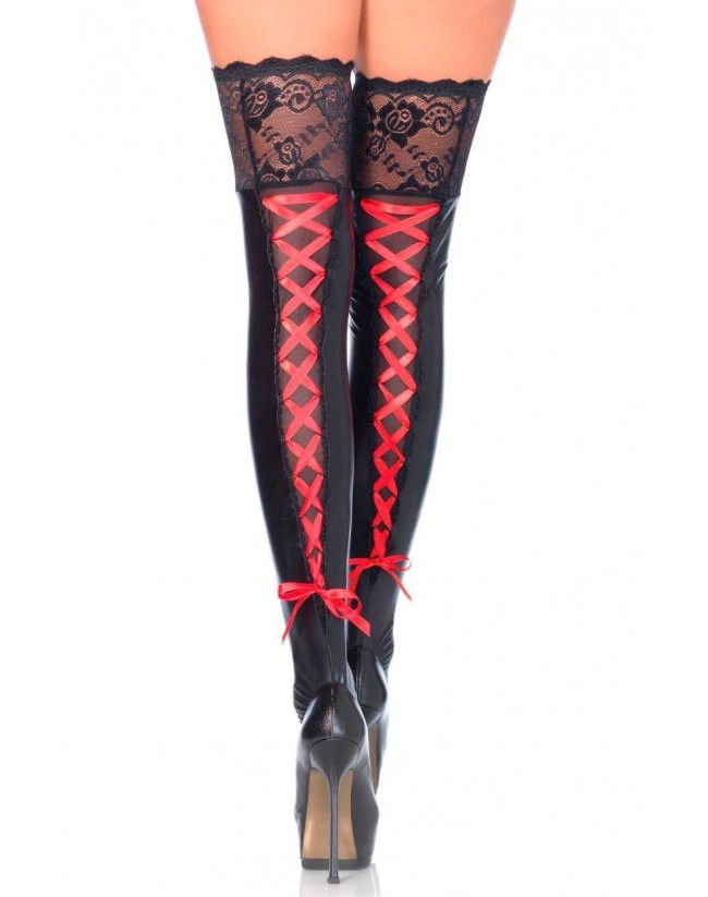 Bonitas medias con encaje superior correaje de saten en rojo y resto de la media en color negro