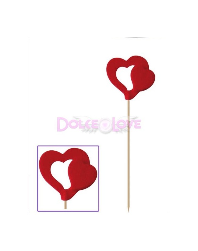 Pincho de Madera con un Corazón hueco de Fieltro Rojo en su parte superior, ideal para cualquier tipo de decoración. 6,5x16cm. 24 unidades.