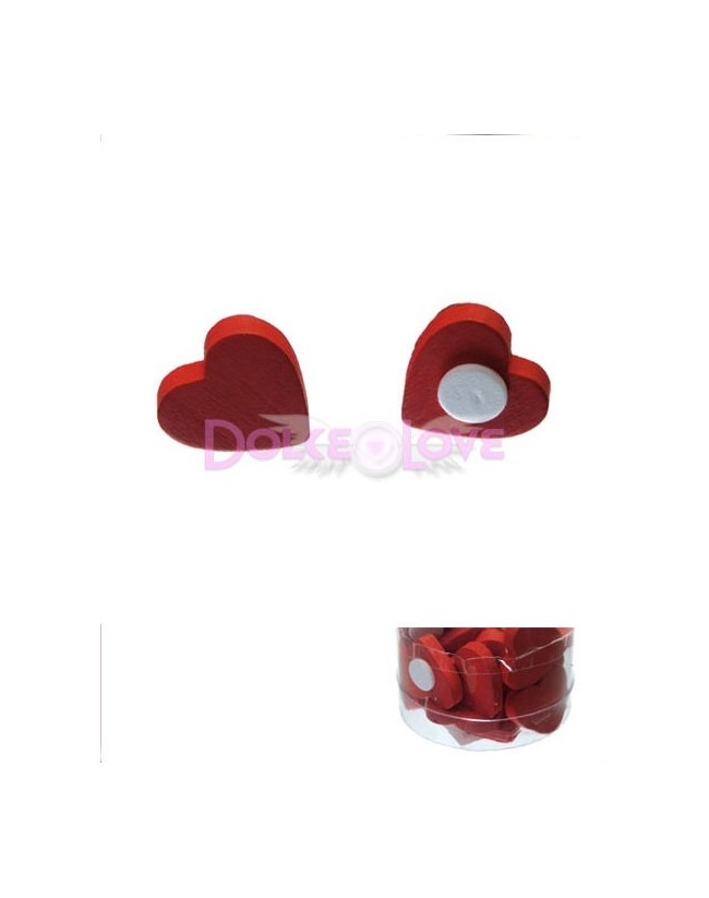 Corazón de Madera en color rojo, con Adhesivo. Para decorar cualquier producto o cesta con un bonito corazón de madera rojo. 24 unidades.