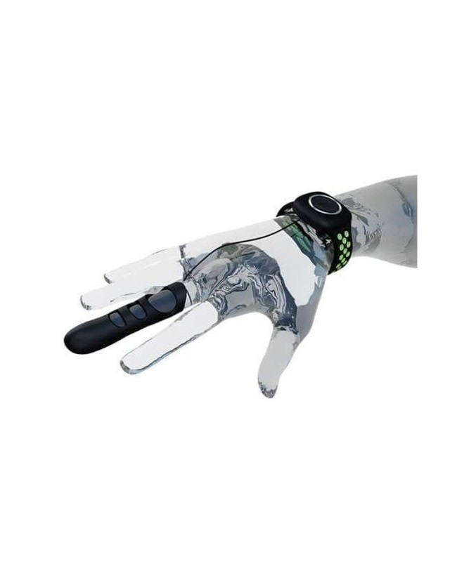ingenioso sistema vibrador con un dedal de silicona controlado desde un reloj que hace tambien de suministrador de baterias.