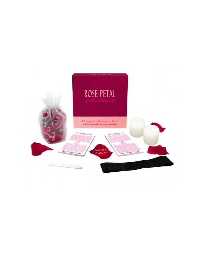 Con el Juego Rose Petal Seductions, podrás dejar un rastro de hasta 100 pétalos de rosa, 24 cartas de seducción, 2 velas, una venda para los ojos, lápiz, ?