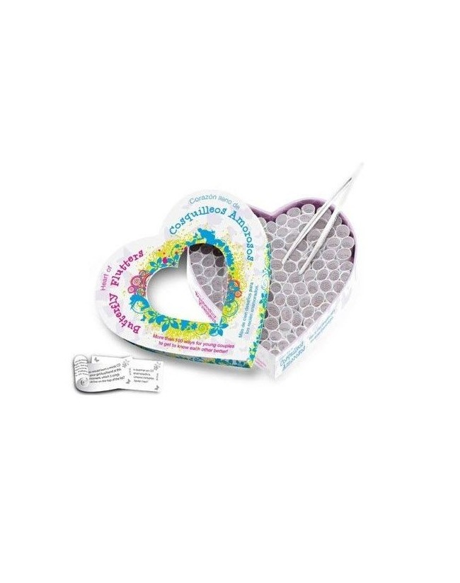 Un juego original para pasar un rato divertido juntos. El juego consiste en sacar un papelito enrollado del corazón, usando las pinzas y cumplir o realizar lo escrito.