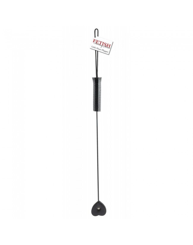 Fusta de 47 cm con varilla de metal rematada con un pequeño corazón de cuero y con cordón de sujeción, para que puedas controlarla mejor.