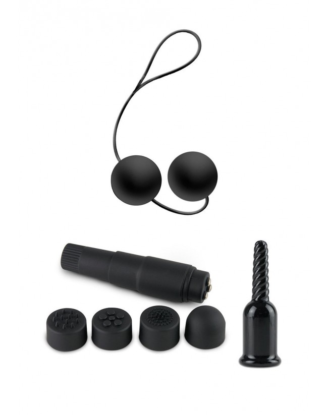 El Kit Ultimate Bondage Kit, contiene: Mordaza con Bola, Plug Anal, Masajeador de Clítoris, Antifaz, Esposas, Pinzas para pezones, Vela, Pluma, Látigo, ?