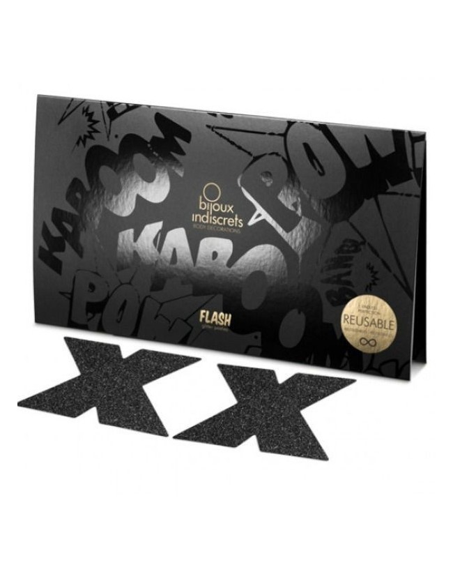 Superwoman! Revela tu verdadera identidad y hazle sucumbir con el poder de tus súper encantos con FLASH, la colección de decoraciones corporales autoadhesivas de brillos deslumbrantes. La seducción con Flash no acaba nunca: las decoraciones son reutilizables, y se adaptan a todo tipo de pecho.