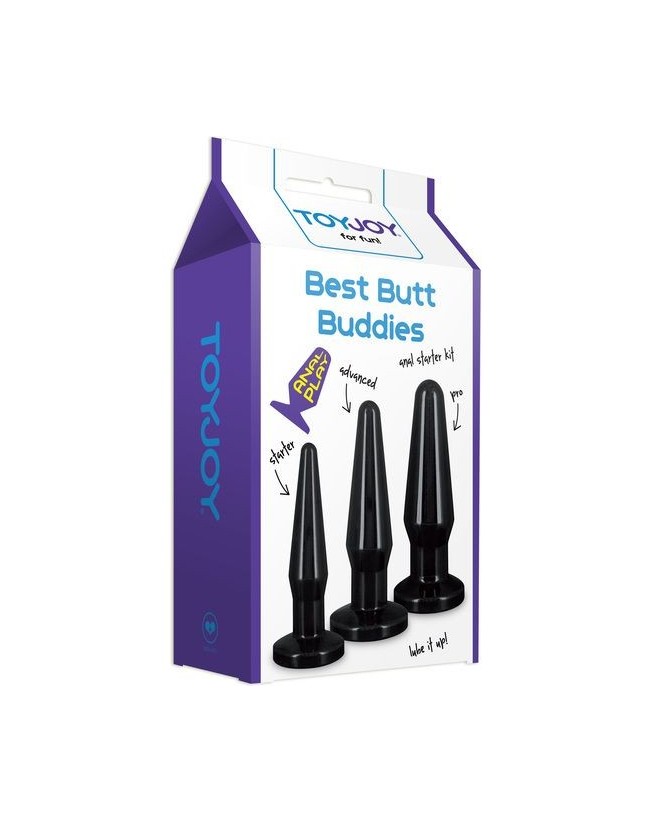 Es un fantástico kit anal compuesto de tres plugs anales de diferentes tamaños según niveles : principiante, avanzado y pro.