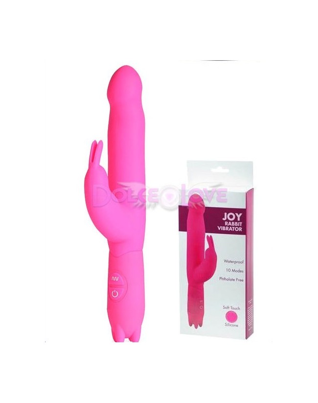 Vibrador de color rosa, delgado, con 10 modos de vibración y estimulación de punto-G. Tiene un conejo como estimulador de clítoris, lo que lo hace el complemento sexual perfecto.