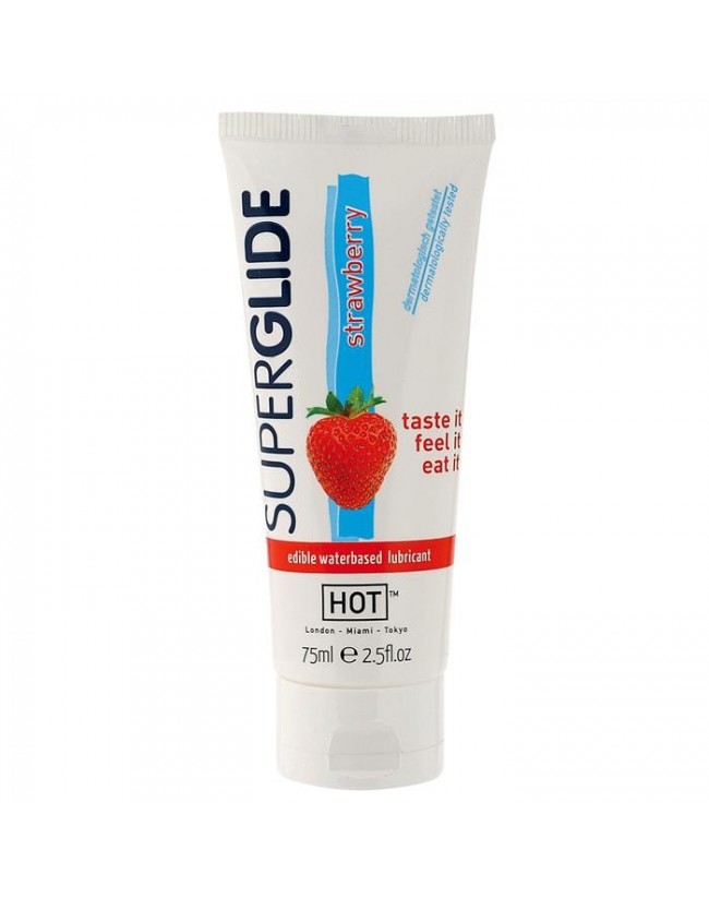 El lubricante SuperGlide con base agua es un lubricante de alta calidad demostrada y no sólo tiene un sabor estimulante exquisito, sino que también mejora notablemente la lubricación durante tus relaciones sexuales. Este lubricante es el ideal para la sequedad vaginal. El lubricante SuperGlide es ideal para uso vaginal u oral y para su uso con preservativos de látex.