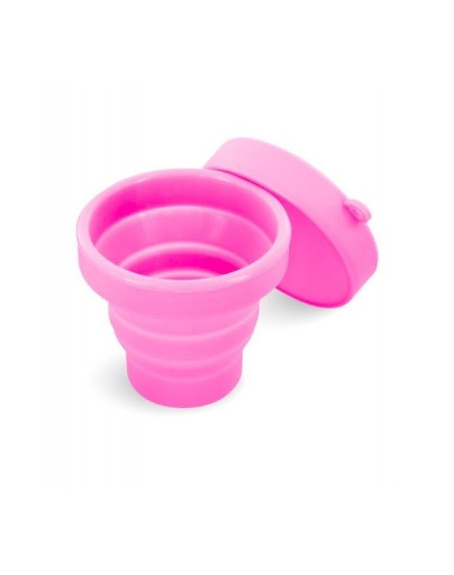 Vaso de esterilización plegable realizado en silicona premium de color rosa para esterilizar tu copa menstrual.